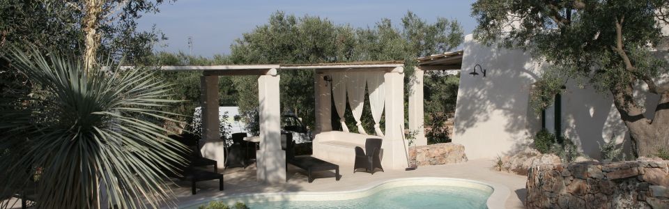 6 schöne, typisch apulische Landhäuser in einem Jahrhunderte alten mediterranen Olivenhain gelegen und nahe an den schönsten Sandstränden der Region.