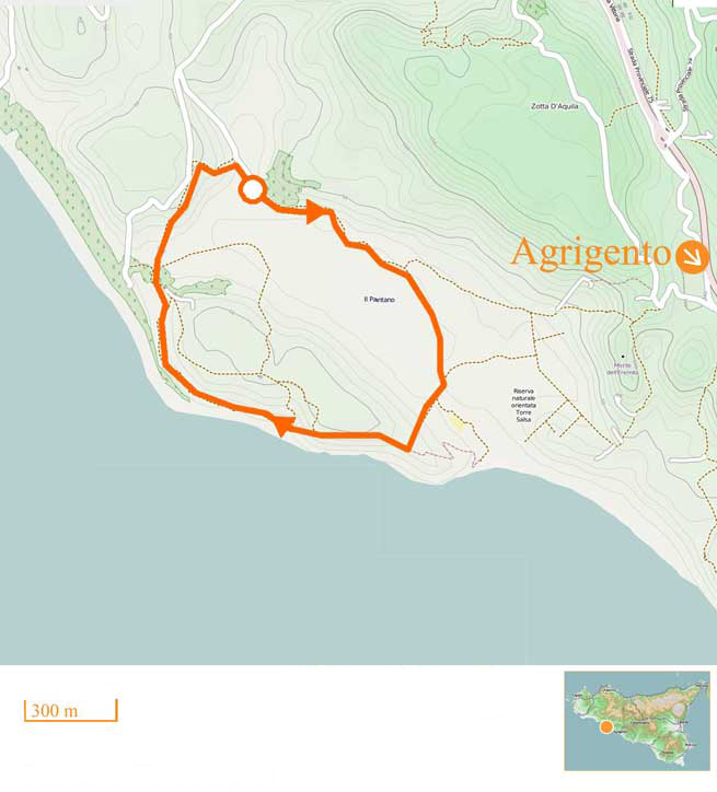 Route mit wunderbaren Meerblicken von Eraclea Minoa zum Fluss Platani über den Capo bianco. 3 einfache Wege: Fuggitella, della Foce und Capo bianco. Die erste zwei sind auch für Fahrrad fahren und Pferde Reiten geeignet. Der Weg della Foce ist auch für Vogel Beobachtung interessant.