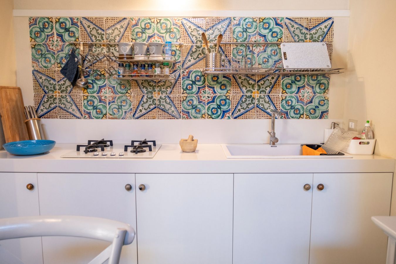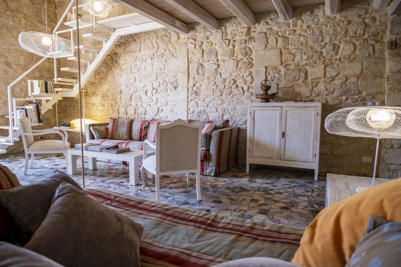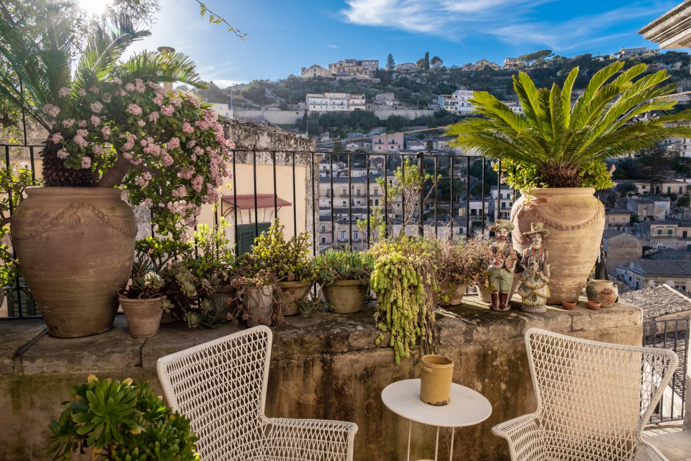 - Luxury Terrace: for 2+2 guests; two-room apartment on the first floor, 150 m², consisting of a double bedroom, large living room with double sofa bed, fully equipped kitchen, bathroom with floor-level shower, a balcony and a furnished terrace with views of the historic centre of Modica. The entrance is shared with the Luxury Apartment Dammusi
