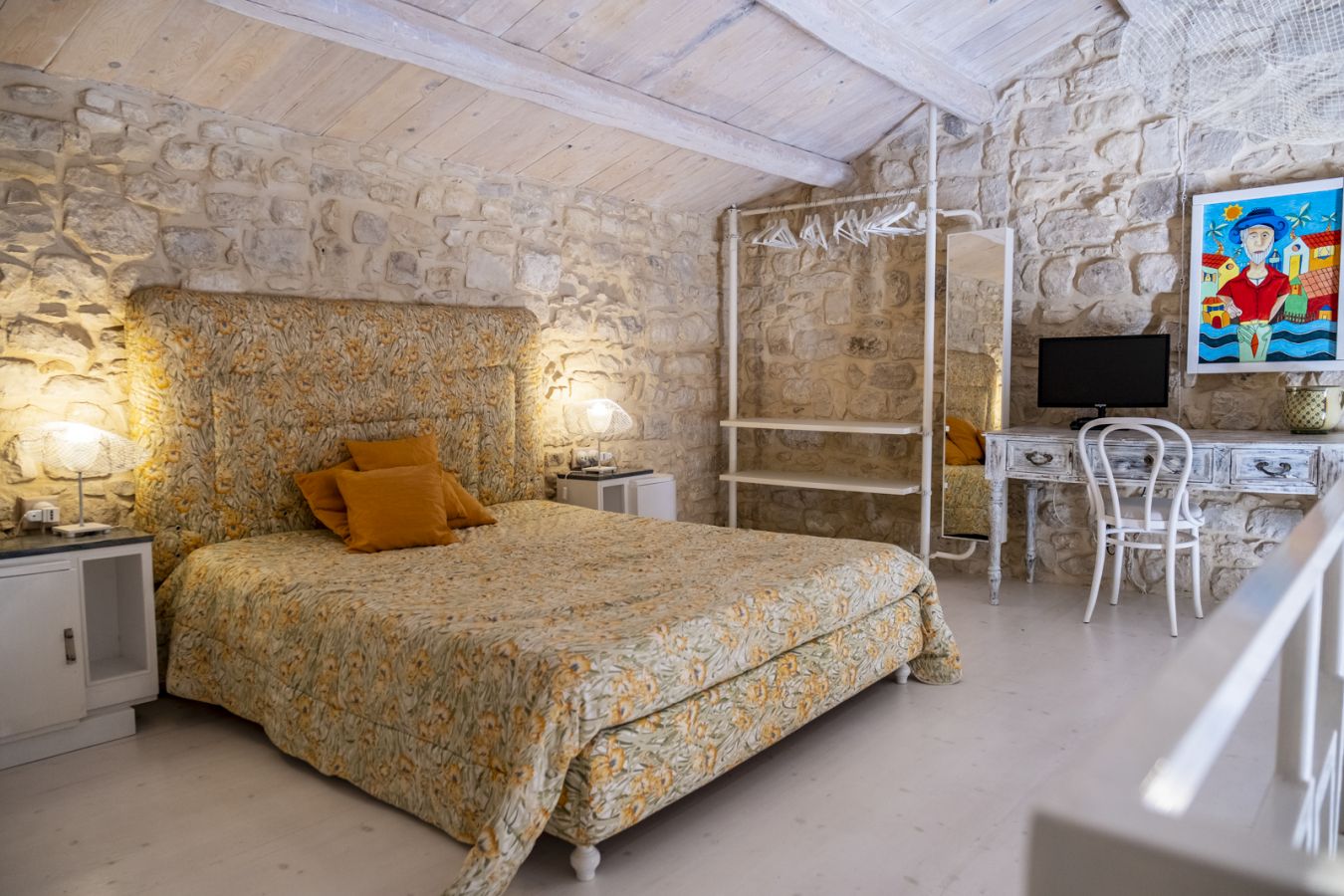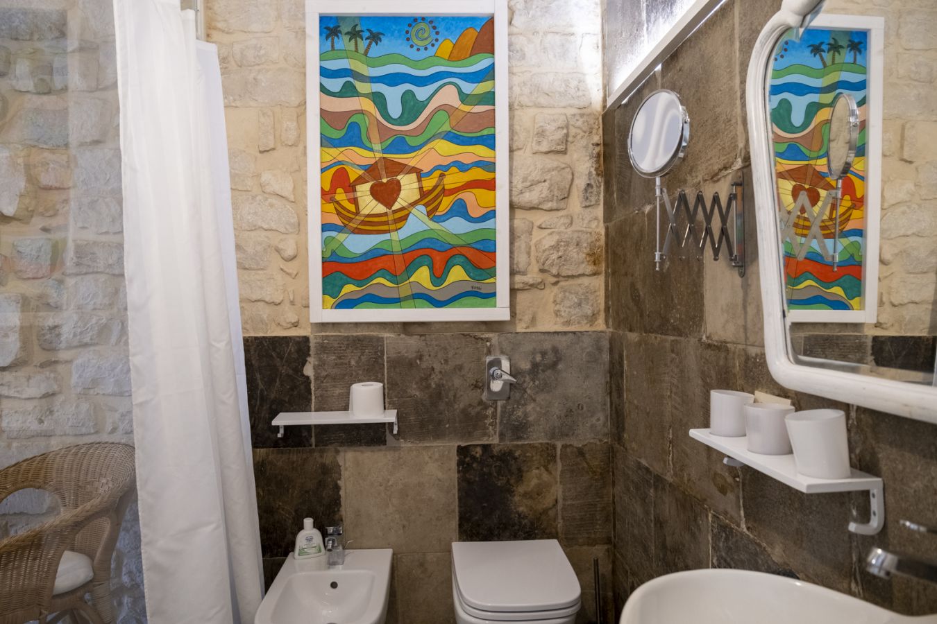 - La Grotta: for 2+2 guests; 60 m² two-room apartment on the ground floor consisting of a double bedroom, living room with double sofa bed, fully equipped kitchen, spectacular bathroom with large shower inside a cave