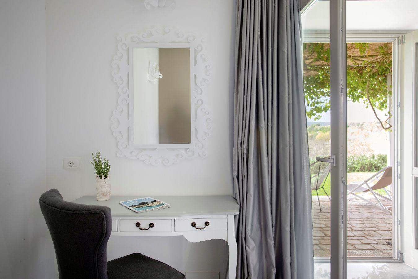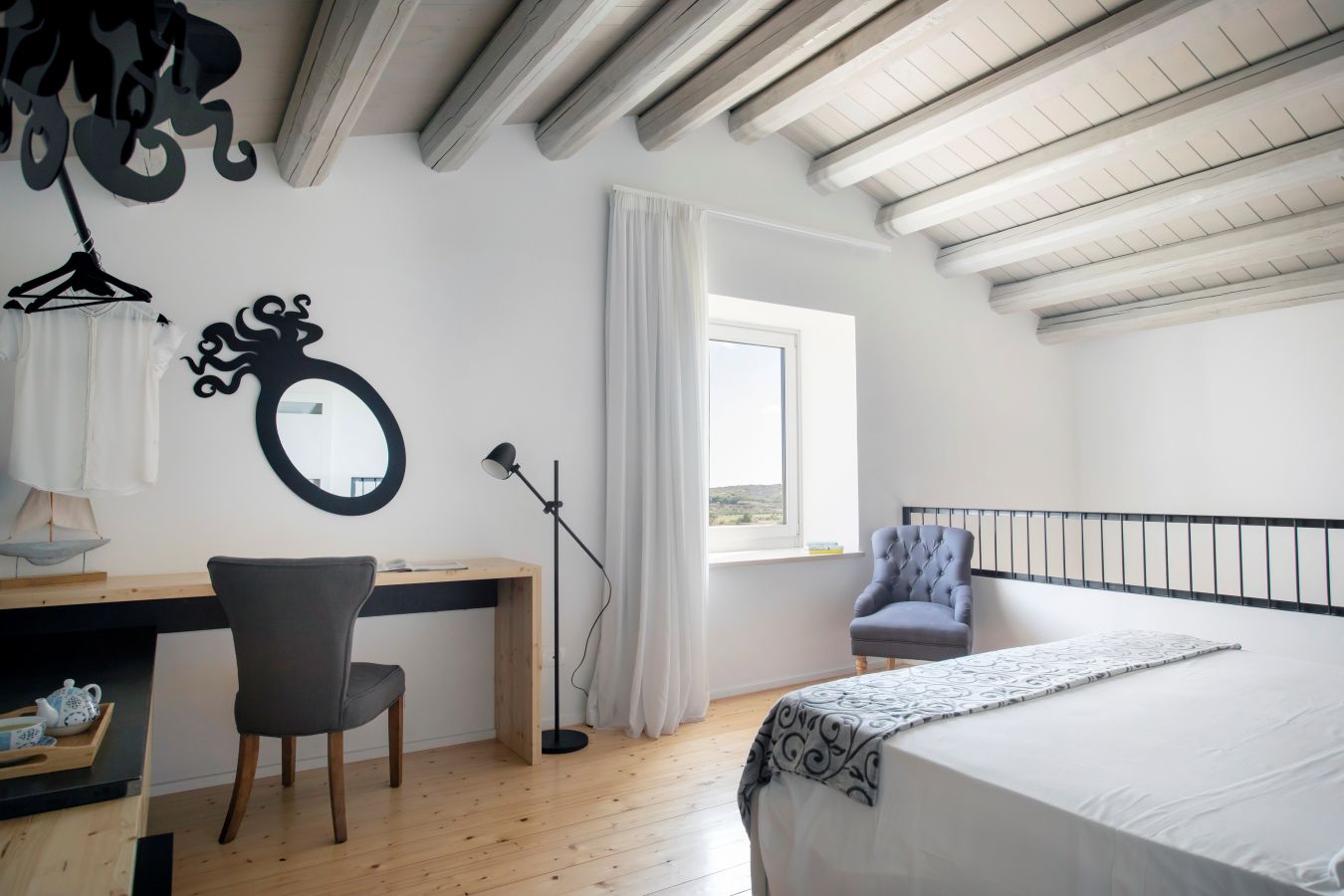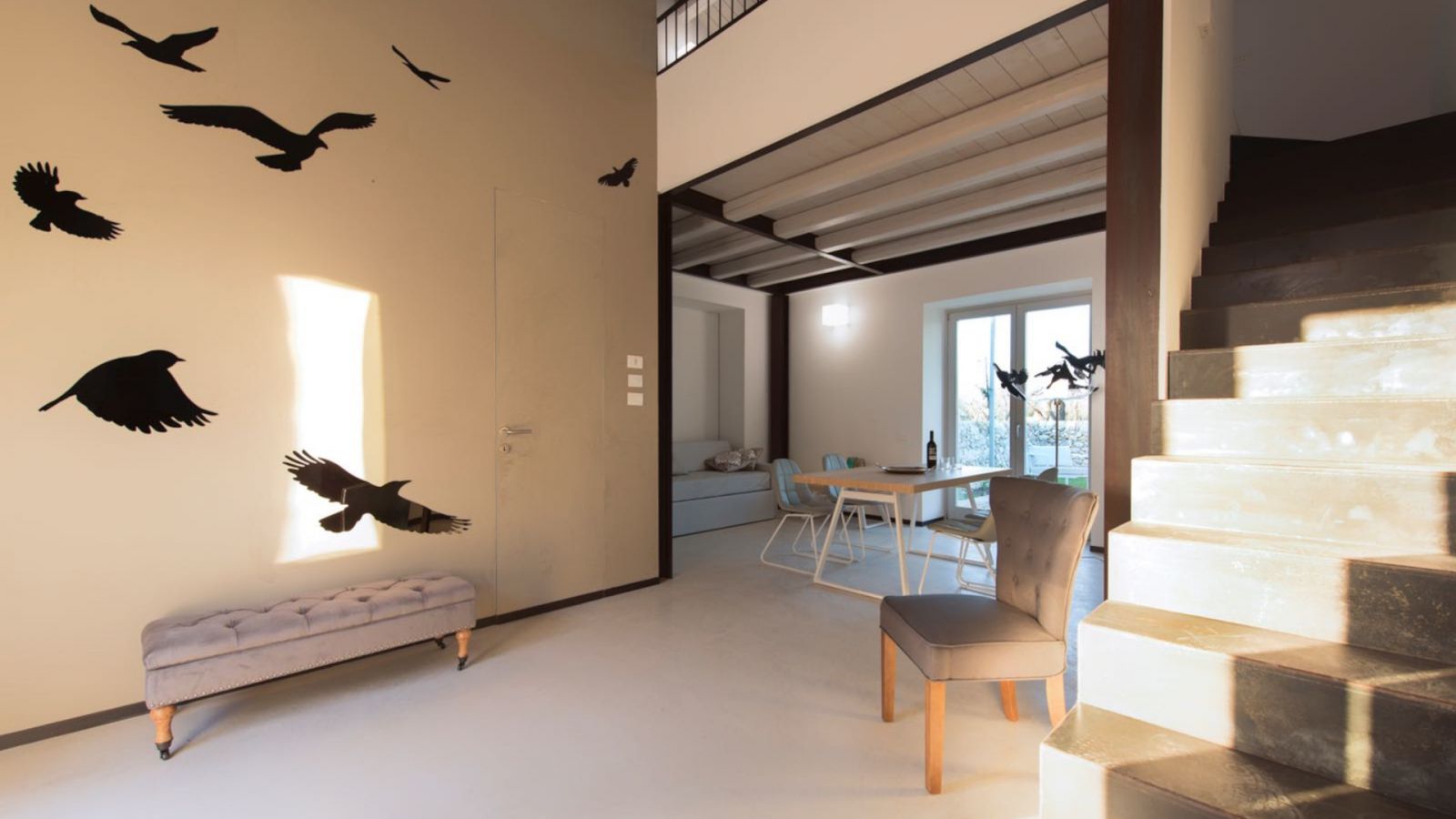 - Suite Uccelli: 54 m². Camera su due livelli per 2+2 ospiti, con ampio soggiorno con divano letto doppio al piano terra, camera matrimoniale con vista panoramica e bagno al piano superiore. Ingresso indipendente e veranda e giardino privati arredati