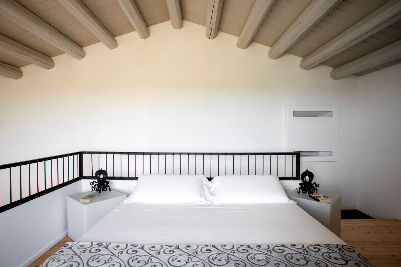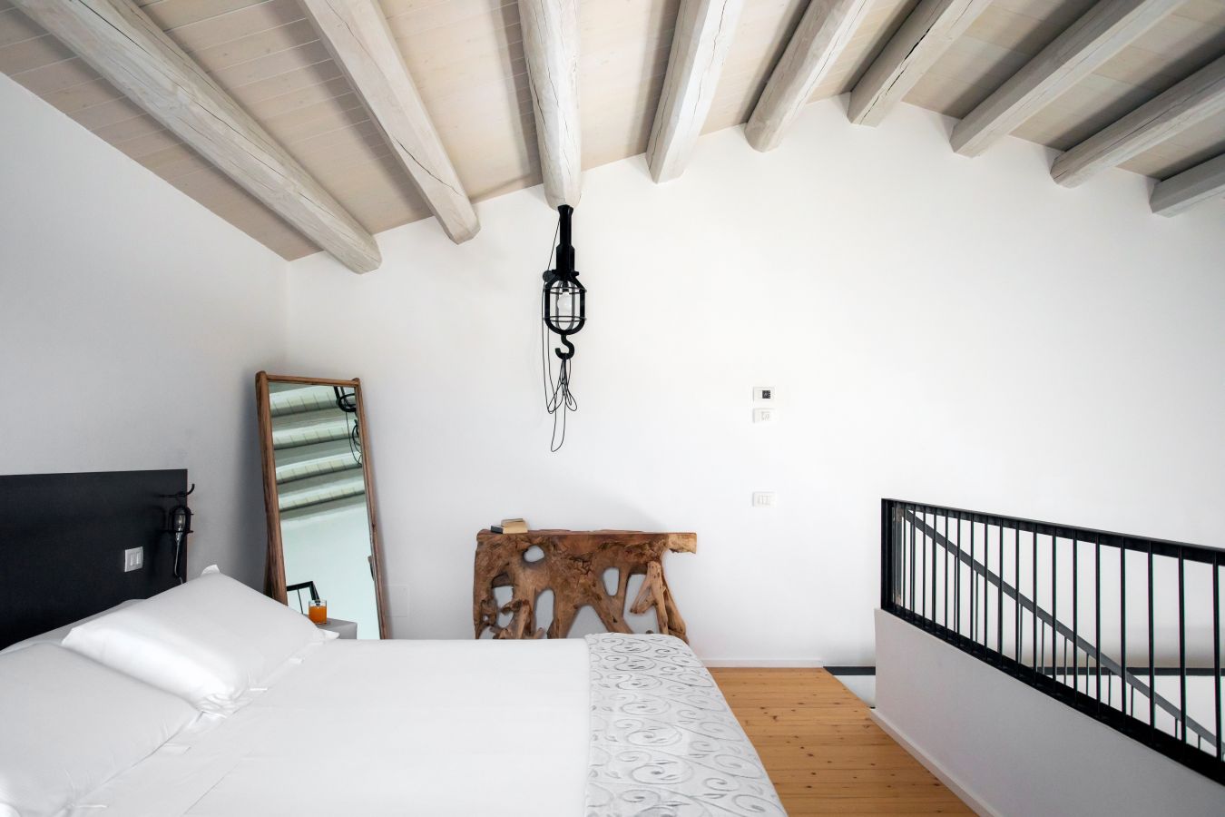 - Camere Superior Alchimia e Ferrovia (32 m²). Al piano terra, per 2+2 ospiti, con letto matrimoniale king size e divano letto doppio (2 singoli). Ingresso indipendente e veranda e giardino privati e arredati