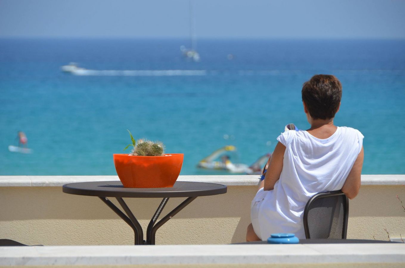 Patio e strada. Vista mare dalla terrazza solarium